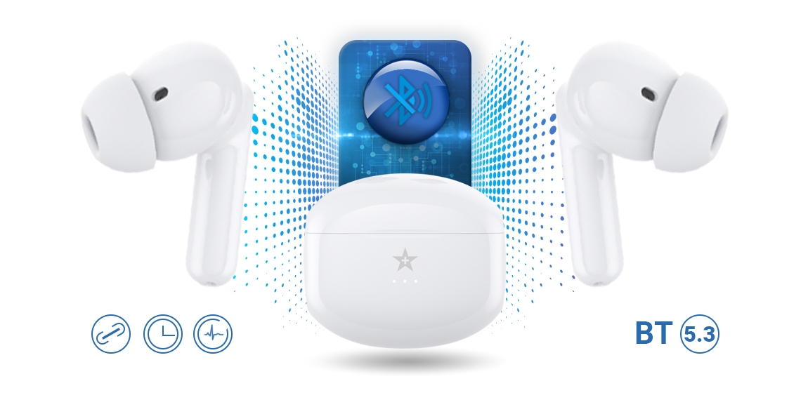 BLUETOOTH 5.3 – Stabilne połączenie + Dłuższy czas pracy