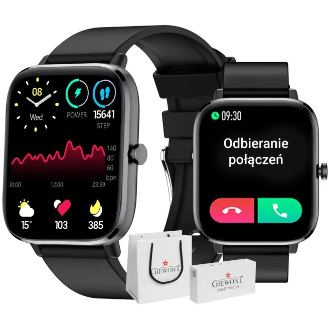 Giewont GW230-2 to elegancki smartwatch w lżejszej, bardziej biżuteryjnej formie. Koperta 38 mm i pasek dobrze sprawdzają się przy codziennym noszeniu i aktywności. To urządzenie, które ma sens w codziennym używaniu, a nie tylko na liście funkcji.