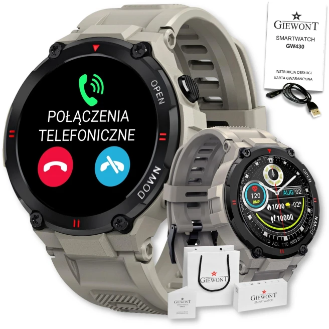 Smartwach Giewont GW 430 szary za taką cenę to duże zaskoczenie na plus Głównie zależało mi na możliwości wykonywania i odbierania połączeń telefonicznych. I w tej kwestii duże zaskoczenie. Jakość rozmowy bardzo dobra.! Dlaczego, zastanawiam się, nic o Waszej firmie dotychczas nie znalazłem w internecie Generalnie znakomity i przede wszystkim tani produkt. Polecam.
