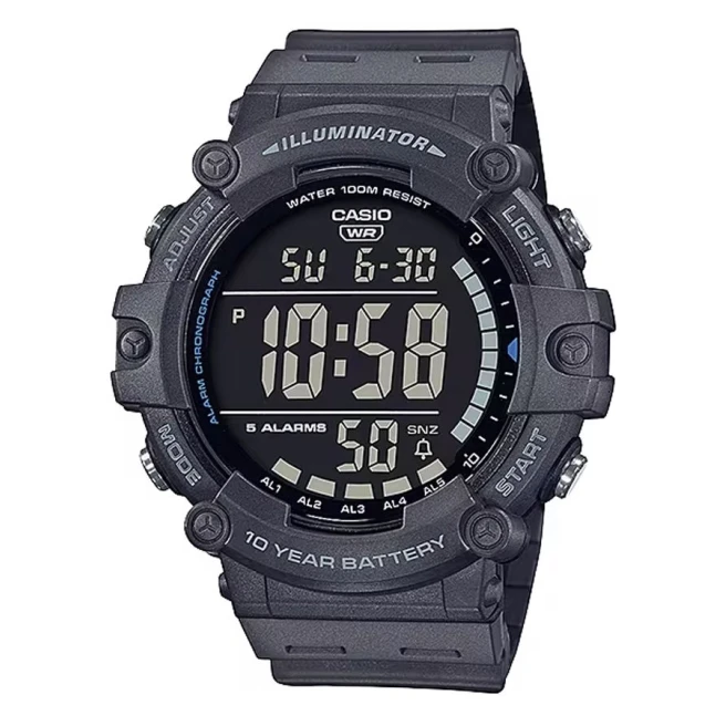 Casio AE-1500WH-8BVDF to większy cyfrowy model z bardzo czytelnym wyświetlaczem i prostym, sportowym charakterem. Ta seria jest nastawiona na szybki odczyt i praktyczne funkcje na co dzień, a 10-letnia bateria dodatkowo wzmacnia jej użytkowy profil.
