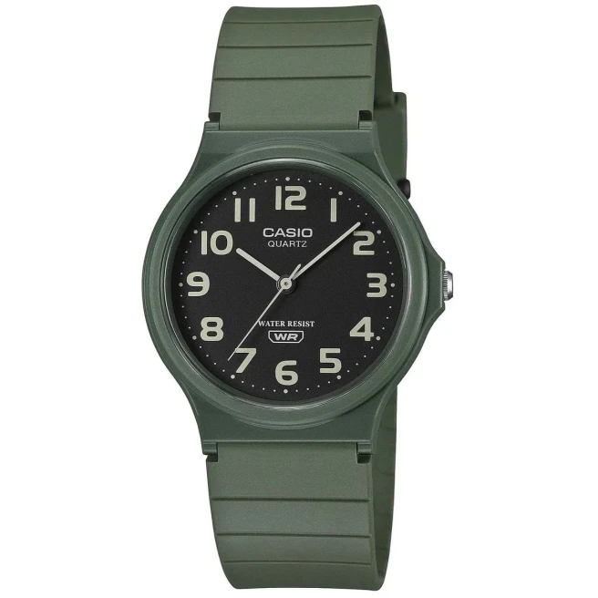 Casio MQ-24UC-3BDF to bardzo lekki model analogowy o prostym, codziennym charakterze. Ta seria stawia na smukłą kopertę, trzy wskazówki i matowe kolory, dzięki czemu dobrze sprawdza się jako nieduży zegarek na co dzień.