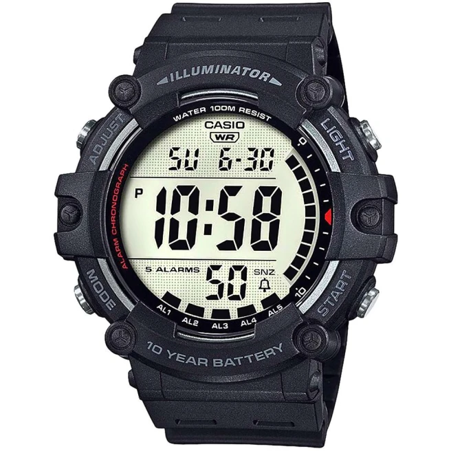 Casio AE-1500WH-1AVDF to większy cyfrowy model z bardzo czytelnym wyświetlaczem i prostym, sportowym charakterem. Ta seria jest nastawiona na szybki odczyt i praktyczne funkcje na co dzień, a 10-letnia bateria dodatkowo wzmacnia jej użytkowy profil.