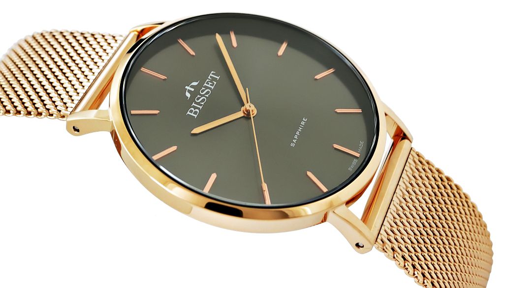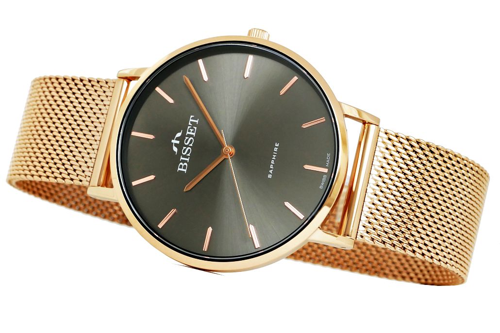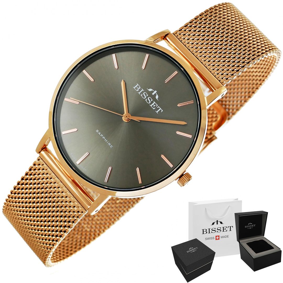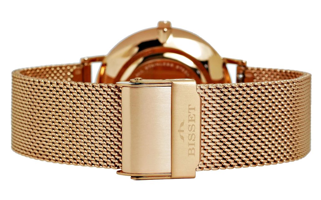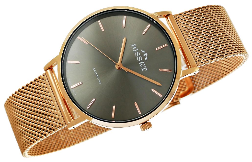 Zegarek damski Różowe złoto Szkło szafirowe Bisset BSBF33-4 na bransolecie różowo-złota