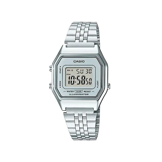 Casio Vintage LA680WA-7DF to mały cyfrowy model o bardzo rozpoznawalnym retro charakterze. Smukła bransoleta, niewielka koperta i prosty moduł Casio sprawiają, że ten zegarek dobrze łączy funkcję z lekkim, biżuteryjnym wyglądem.
