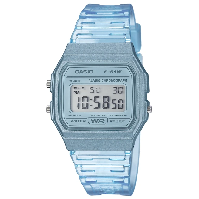 Casio F-91WS-2DF to świeższa, bardziej pastelowa interpretacja kultowego F-91. Zachowuje tę samą lekką kopertę i prosty moduł, ale dzięki jaśniejszej kolorystyce wygląda subtelniej niż ciemniejsze warianty tej serii.