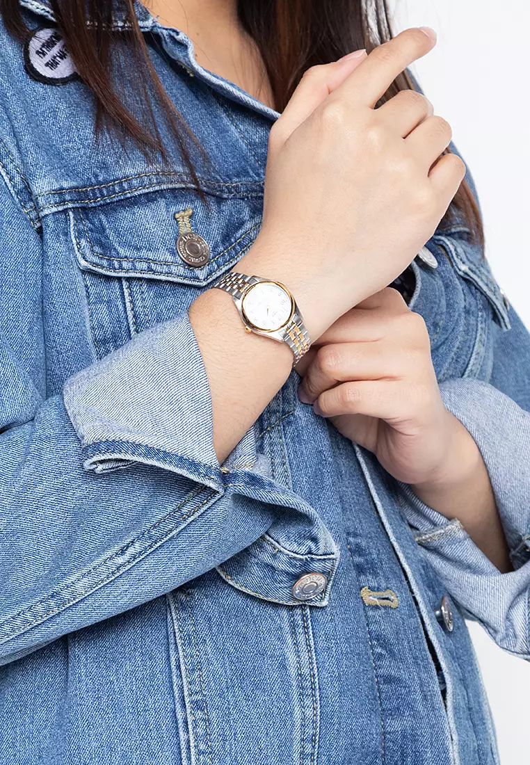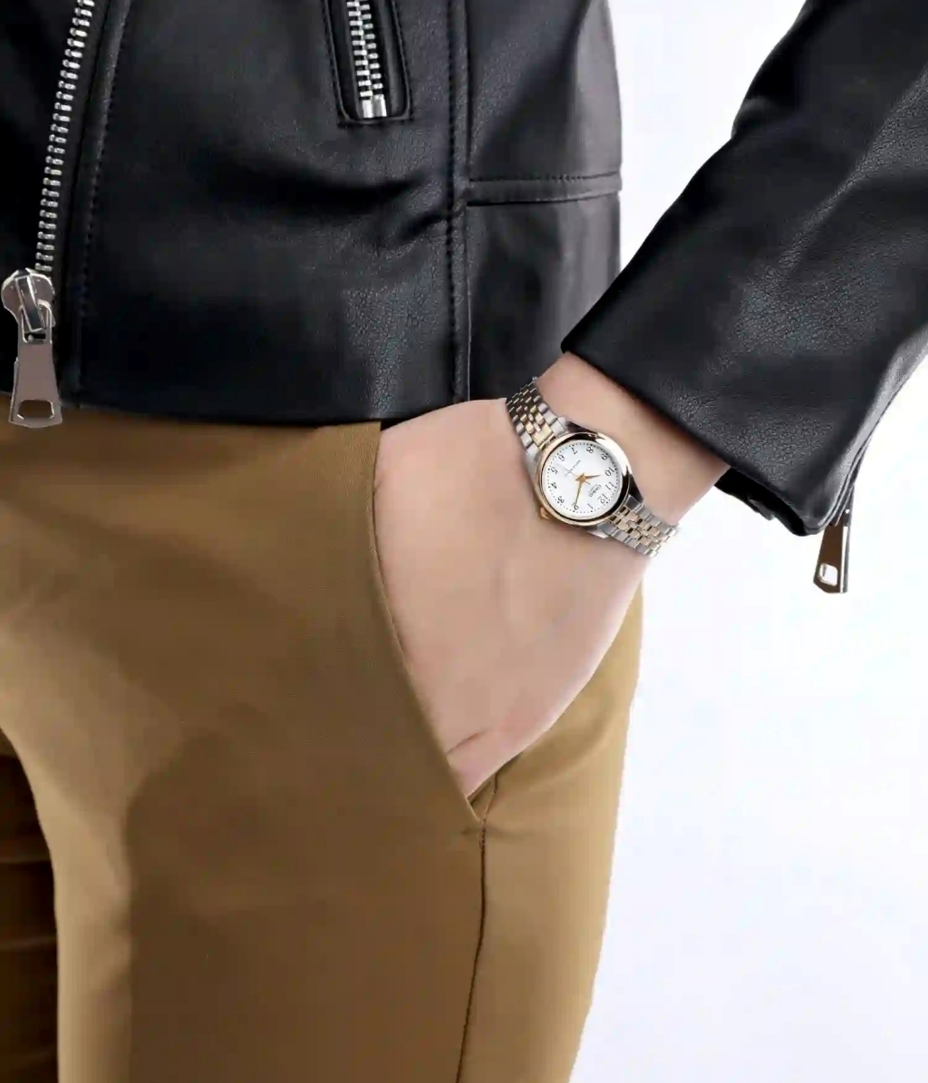 z złotymi indeksami oraz wskazówkami tworzą harmonijną całość, idealnie komponując się z codziennymi i eleganckimi stylizacjami.