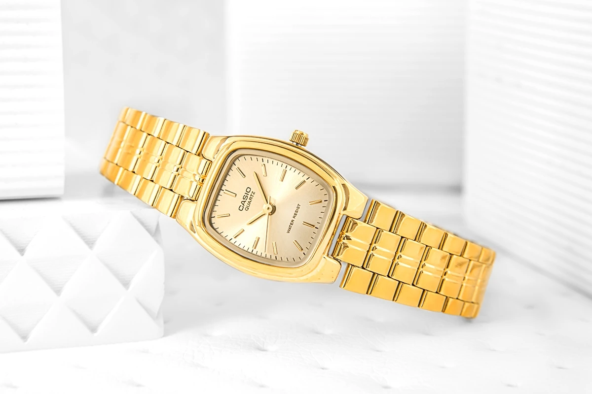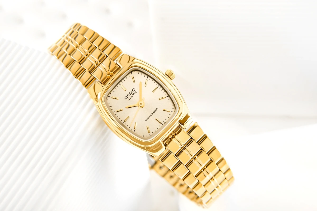 Model CASIO stworzony z myślą o kobietach, które lubią łączyć wygodę z ponadczasową elegancją i wyczuciem stylu. Dzięki złotej bransolecie i połyskującej kopercie wygląda jak luksusowa biżuteria, a jednocześnie jest lekki i komfortowy w codziennym noszeniu. Jego kompaktowy rozmiar doskonale układa się na nadgarstku, podkreślając kobiecość bez przesady. Minimalistyczna tarcza ułatwia szybkie odczytanie godziny, a klasyczny design pasuje do każdej stylizacji – od biura po kolację z przyjaciółmi. Zyskujesz nie tylko piękny dodatek, ale też funkcjonalność, niezawodność i poczucie, że zawsze wyglądasz z klasą.