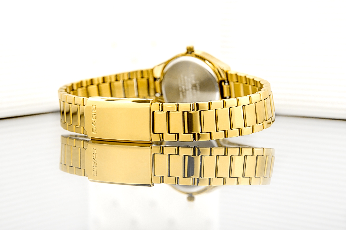 Damski model CASIO, który nie konkuruje z biżuterią – on sam nią jest. Zegarek dodaje szyku nawet najprostszym stylizacjom, a jego minimalistyczna forma i kompaktowy rozmiar sprawiają, że doskonale układa się na nadgarstku. Lekki i wygodny – możesz nosić go cały dzień i zapomnieć, że masz go na ręce… aż ktoś zwróci na niego uwagę. Jego delikatna konstrukcja i kobiecy charakter sprawiają, że doskonale wpisuje się w styl elegancki, minimalistyczny i codzienny – od biura po wieczorne wyjścia. Lśniąca, złota bransoleta i koperta tworzą wrażenie luksusu i klasy, a minimalistyczna tarcza – bez zbędnych detali podkreśla to tylko to, co najważniejsze. Całość dopełnia dyskretny datownik – elegancko wkomponowany w tarczę dodający szyku i funkcjonalności.