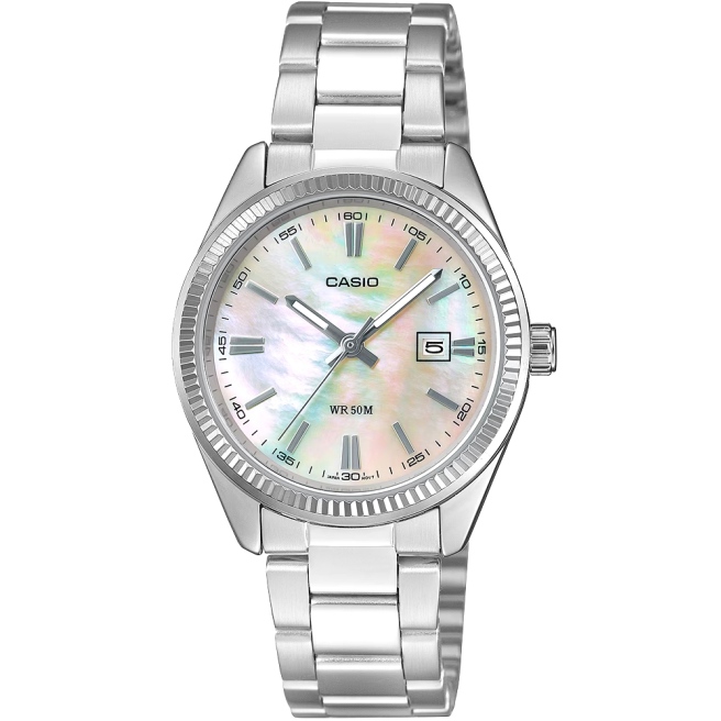 Klasyczny analogowy zegarek w metalowej oprawie, ozdobiony przepięknym kolorem – w wersji z tarczą z masy perłowej, która zachwyca naturalnym blaskiem i wyjątkowym charakterem. Tarcza z masy perłowej emanuje delikatnym światłem i spokojem. Jej powierzchnia wydaje się prosta, ale skrywa głębię – każdy egzemplarz jest nieco inny, bo natura nigdy się nie powtarza. To detal który czyni ten zegarek naprawdę wyjątkowym. Srebrna bransoleta z lekkim połyskiem otula nadgarstek niczym biżuteria, a czytelny datownik na godzinie 3. ułatwia codzienną organizację. Dzięki wodoodporności do 50 metrów zegarek towarzyszy Ci bez względu na pogodę – z lekkością, z jaką poruszasz się przez dzień. Delikatny, ale wyrazisty. Z klasą, ale bez przesady. Idealny do ulubionej białej koszuli, sukienki w kwiaty czy jeansów z wysokim stanem – bo to Ty decydujesz, co dziś znaczy „styl”.