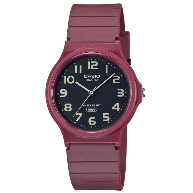 Casio MQ-24UC-4BDF to bardzo lekki model analogowy o prostym, codziennym charakterze. Ta seria stawia na smukłą kopertę, trzy wskazówki i matowe kolory, dzięki czemu dobrze sprawdza się jako nieduży zegarek na co dzień.