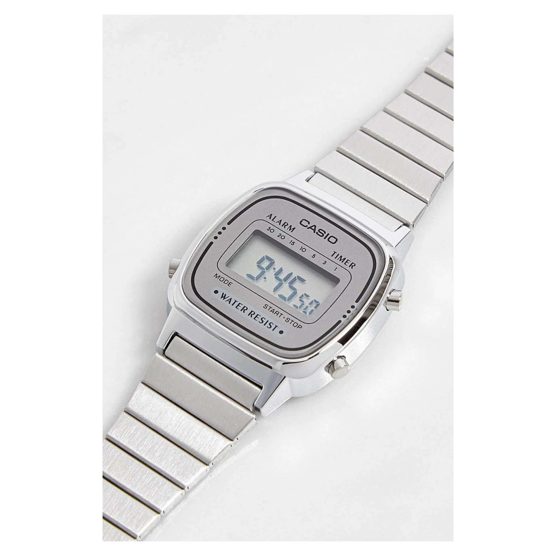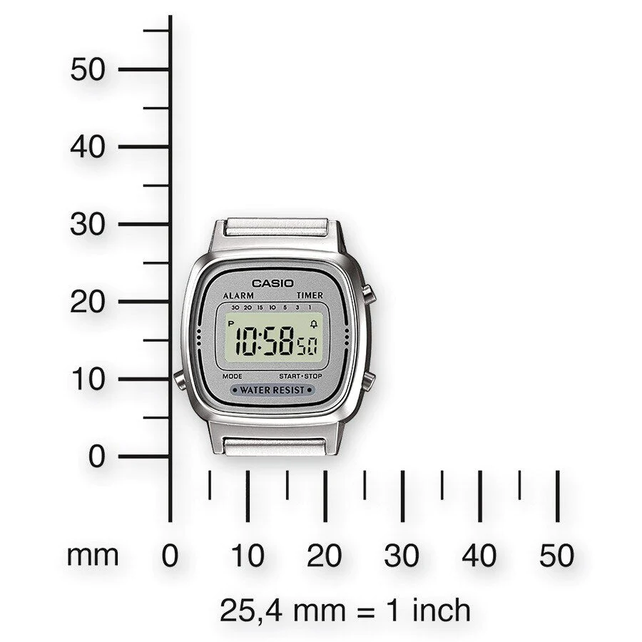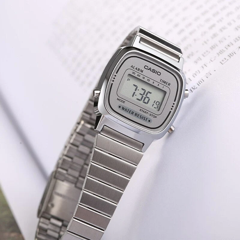 Prezentujemy mały zegarek damski CASIO Vintage LA670WA-7DF który towarzyszy w każdej sytuacji, dodając stylu i elegancji. Zegarek został wykonany z wysokiej jakości stali szlachetnej w kolorze srebrnym, co nadaje mu uniwersalny charakter i sprawia, że pasuje do każdej stylizacji. Zegarek posiada szkło akrylowe oraz mechanizm kwarcowy który zapewnia precyzyjny czas.