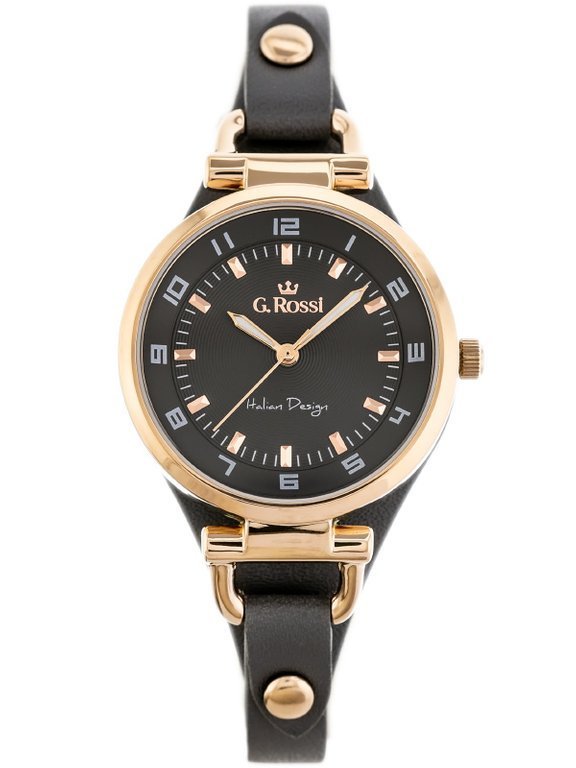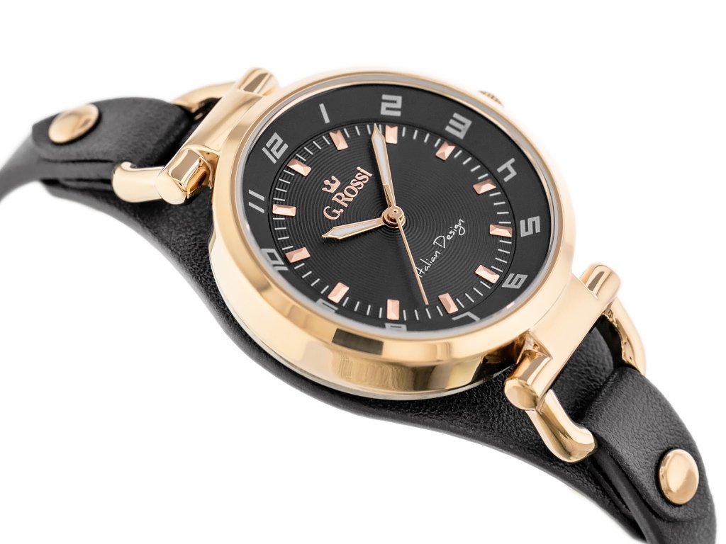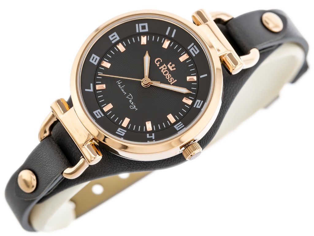 G.Rossi 3652A2-1B3 to damski model na pasku z podkładką, z kopertą 32 mm i delikatnym, codziennym charakterem. Podkładka miękko układa zegarek na nadgarstku, a fluorescencyjne wskazówki podnoszą czytelność w słabszym świetle.