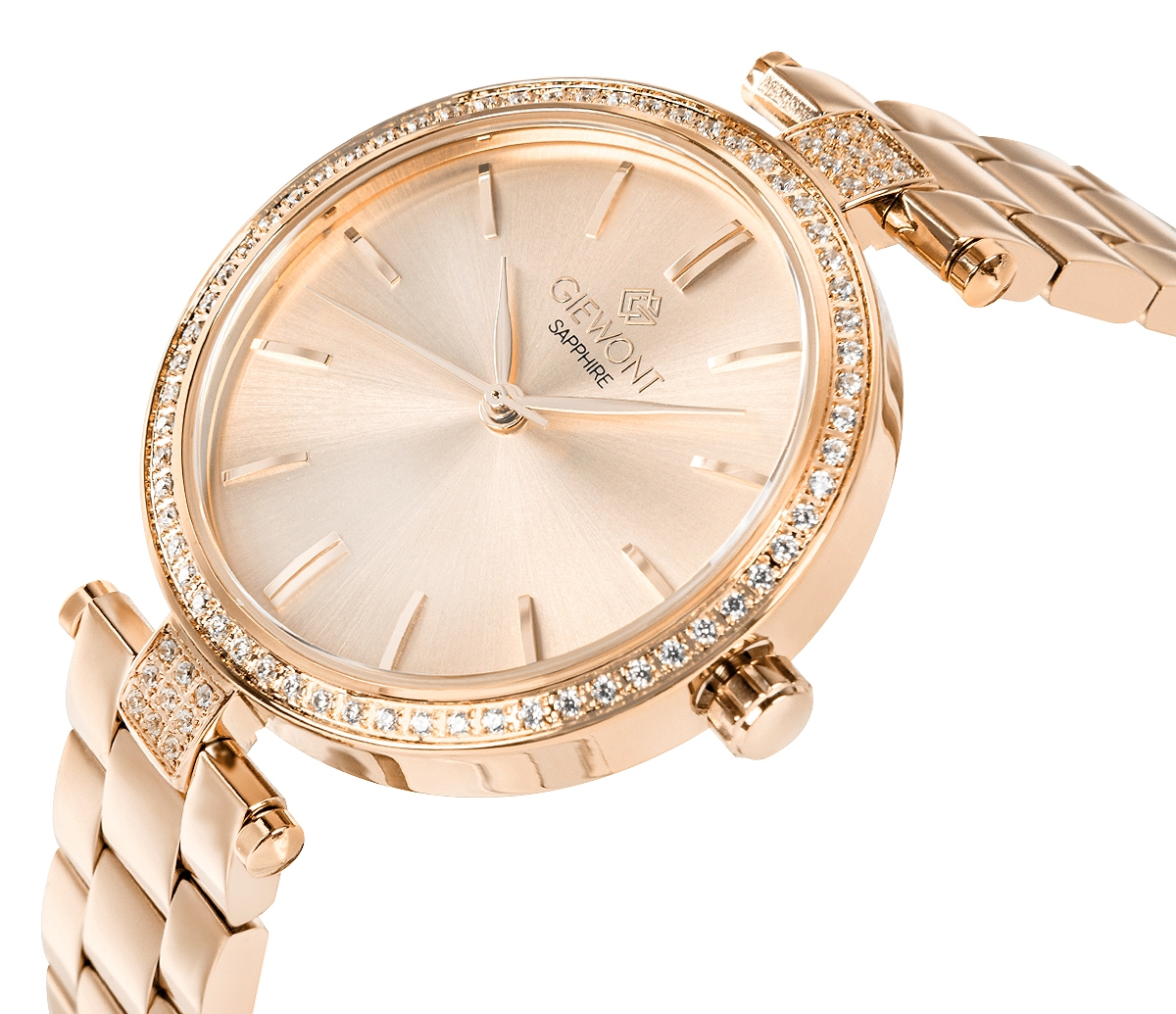 Giewont GW9890-B3 to damski zegarek z linii Giewont Sapphire, utrzymany w eleganckiej, biżuteryjnej stylistyce. Koperta 34 mm i układ na bransolecie dobrze wpisują go w codzienne noszenie, ale ten model bez problemu pasuje też do bardziej uporządkowanego ubioru.