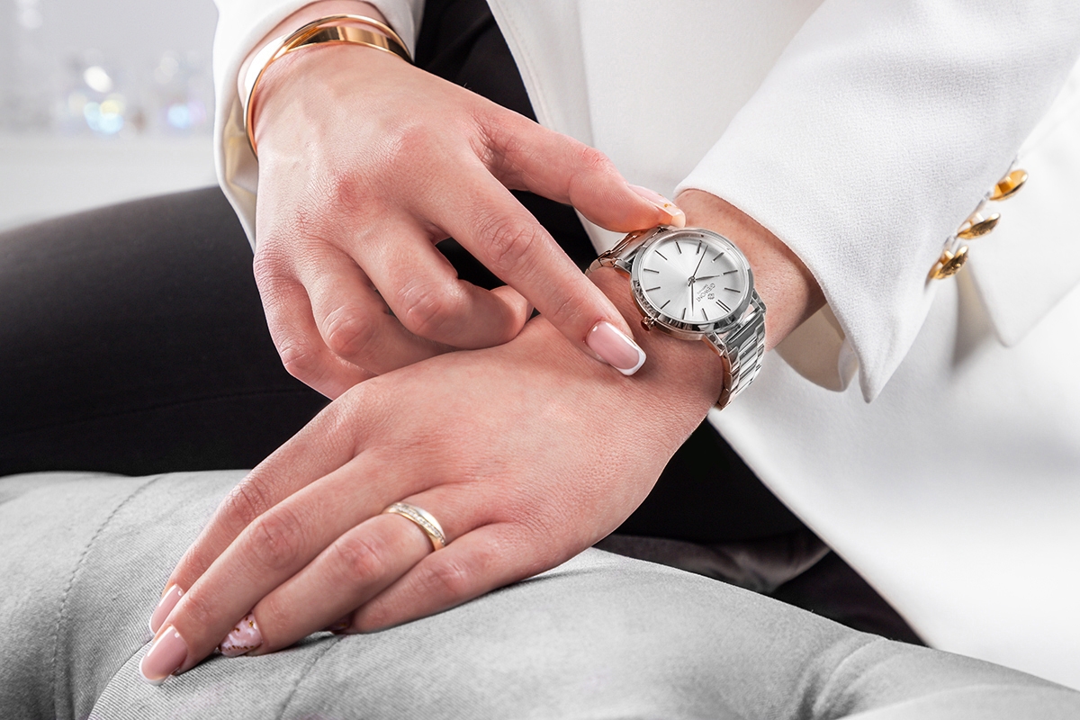 Giewont GW2360-B1 to damski zegarek z linii Giewont Sapphire, utrzymany w eleganckiej, biżuteryjnej stylistyce. Koperta 34 mm i układ na bransolecie dobrze wpisują go w codzienne noszenie, ale ten model bez problemu pasuje też do bardziej uporządkowanego ubioru.