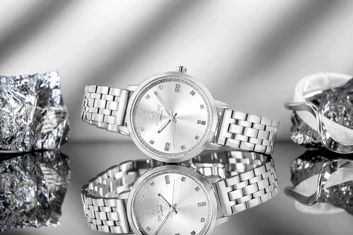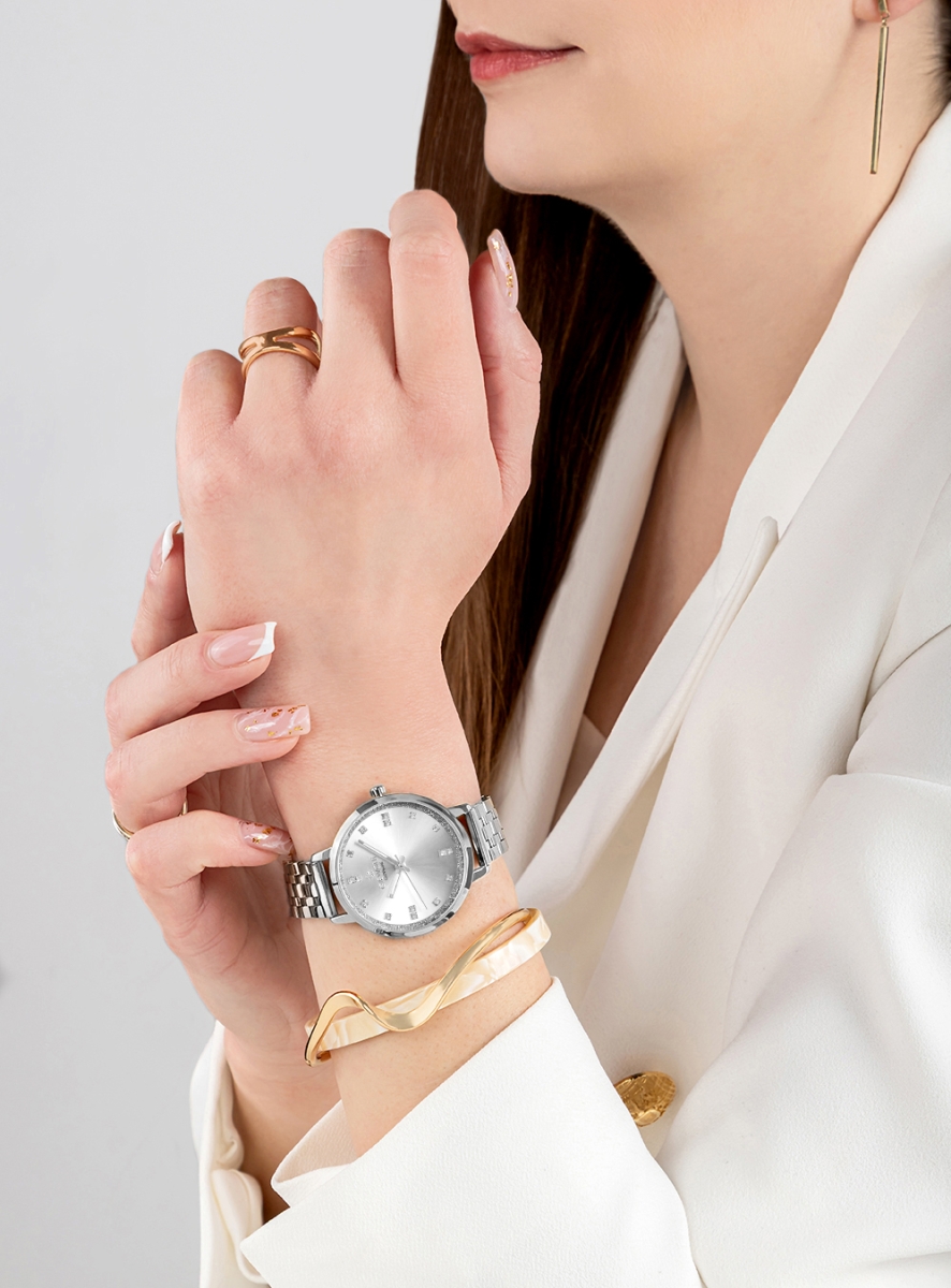 Charakter modelu: Srebrna tarcza i srebrna bransoleta budują elegancki, ozdobny efekt.