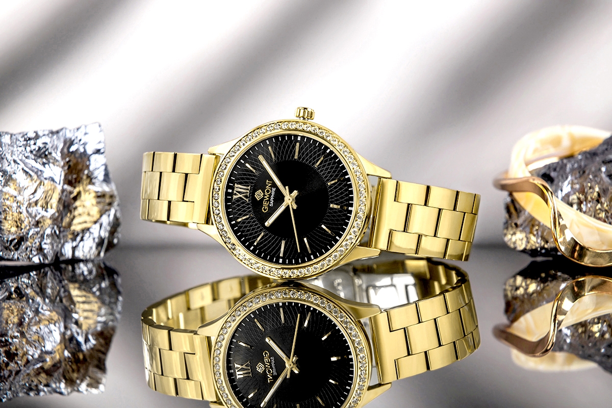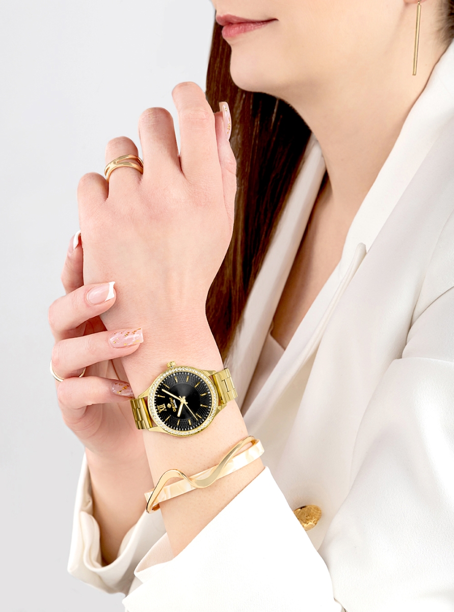 Charakter modelu: Czarna tarcza i złota bransoleta budują elegancki, ozdobny efekt.