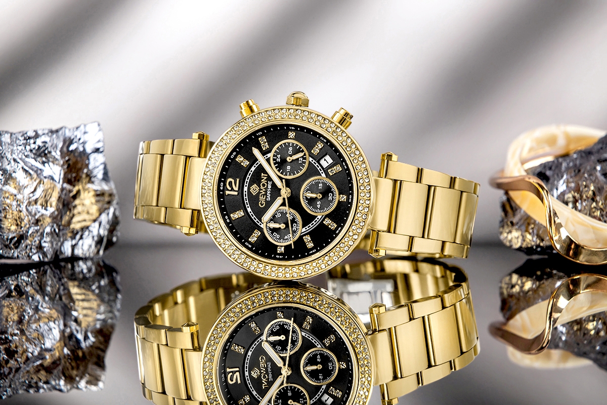Charakter modelu: Czarna tarcza i złota bransoleta budują elegancki, ozdobny efekt.