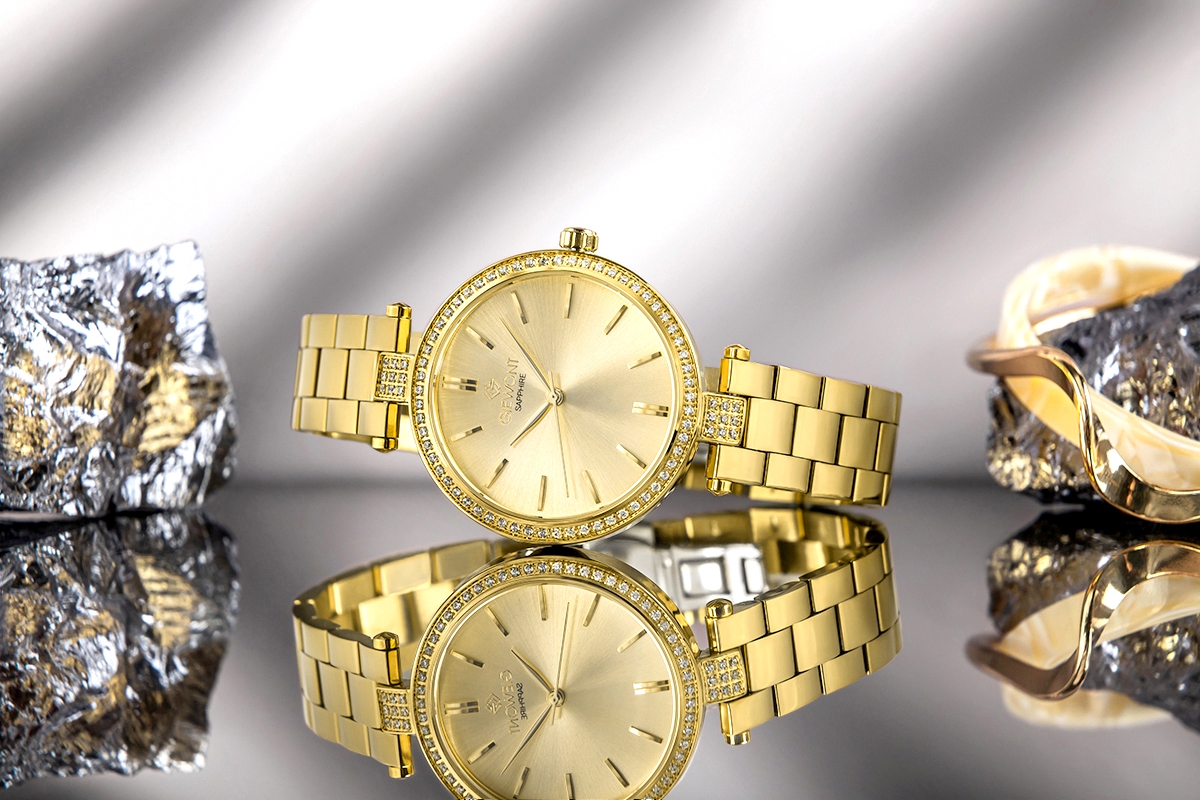 Charakter modelu: Złota tarcza i złota bransoleta budują elegancki, ozdobny efekt.