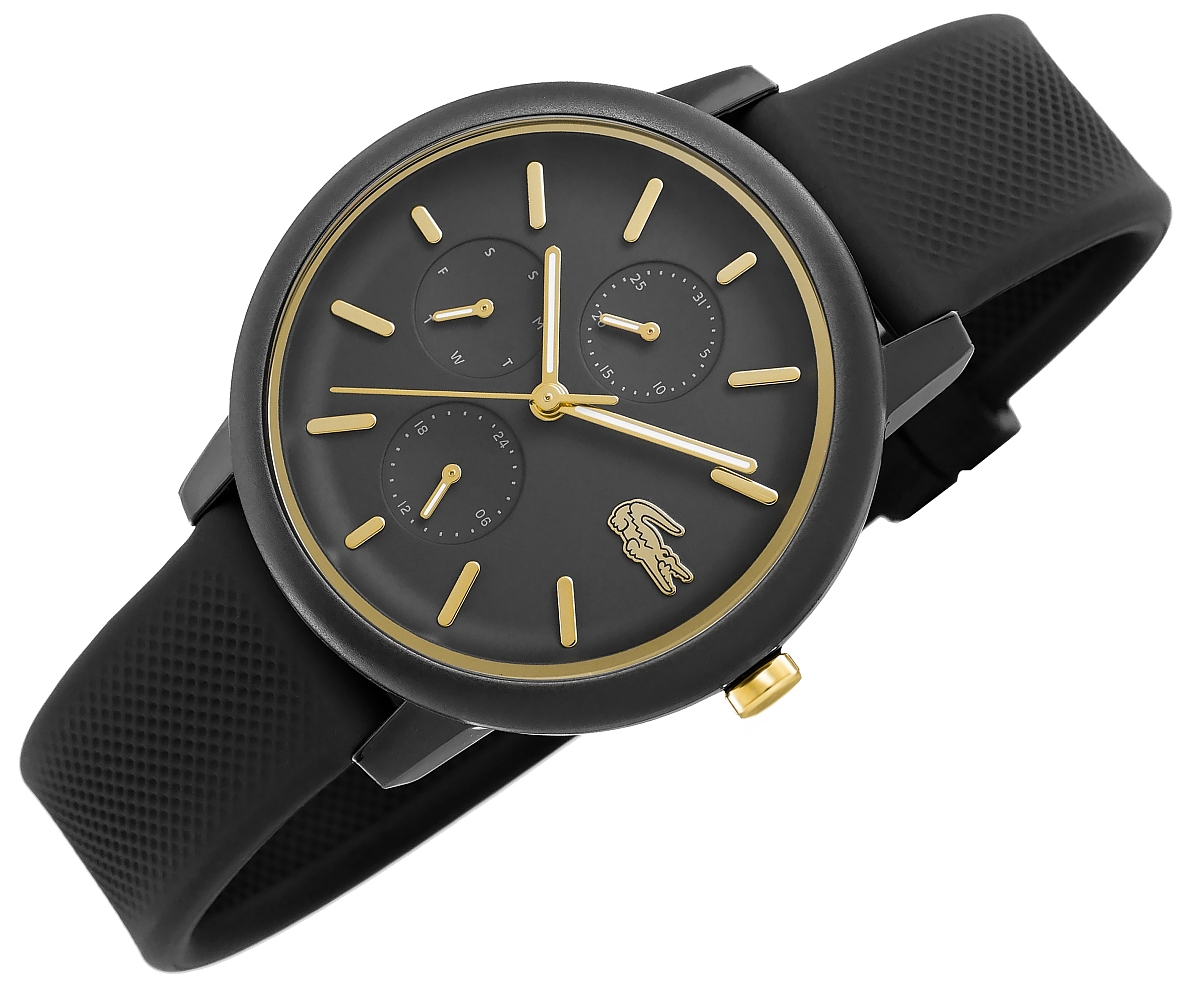 Ten damski zegarek Lacoste to kwintesencja elegancji z nowoczesnym, minimalistycznym twistem, idealny dla kobiety ceniącej subtelne, ale wyraziste dodatki. Jego głęboka, matowa czerń stanowi doskonałe tło dla wyrafinowanych, złotych akcentów, które nadają całości luksusowego blasku bez nadmiernej ekstrawagancji.
