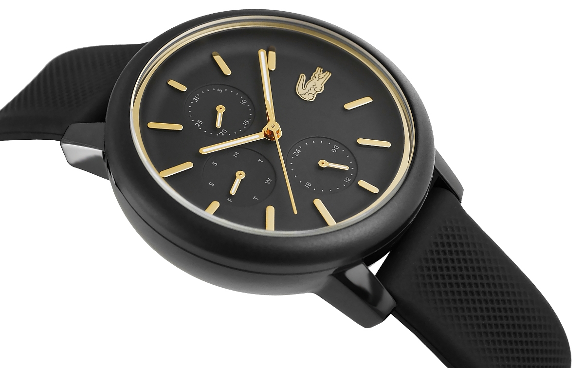 Głęboka, matowa czerń koperty i tarczy tworzy tło pełne tajemnicy, jak letnia noc, która kryje w sobie nieodkryte możliwości. Złote akcenty, niczym subtelny błysk biżuterii, delikatnie rozświetlają projekt, dodając mu luksusowego blasku, ale bez przesadnej ekstrawagancji – tu króluje klasa i wyrafinowanie. Wskazówki w kolorze złota, z delikatnym białym akcentem, przesuwają się po tarczy z gracją, jakby były prowadzone przez cichy taniec czasu, a smukły, złoty sekundnik dodaje całości precyzyjnej nuty, która przyciąga uwagę. Czarny, teksturowany pasek to więcej niż komfort – to stylowy kontrapunkt który wprowadza nowoczesny, sportowy akcent, doskonale równoważący matową elegancję koperty. Złote detale – logo Lacoste na godzinie 3, korona i sprzączka – to niczym małe, wyrafinowane klejnoty, które dopełniają całość, sprawiając, że noszenie tego zegarka to prawdziwa przyjemność, wyrażająca Twoją kobiecość, siłę i wyczucie stylu. SZKIEŁKO MINERALNE – OPTYMALNA OCHRONA ORAZ CZYTELNA TARCZA Szkiełko zastosowane w tym modelu zegarka wykonano z krzemowego szkła mineralnego, które charakteryzuje się większą twardością w porównaniu do szkła syntetycznego. Dzięki temu skutecznie chroni tarczę przed zarysowaniami, uszkodzeniami i zabrudzeniami. Co więcej, szkło mineralne cechuje się elastycznością, co sprawia, że jest mniej podatne na pęknięcia i stłuczenia. Dodatkowo zapewnia doskonałą przejrzystość oraz jasność, co znacząco ułatwia szybki i wyraźny odczyt godziny w różnych warunkach oświetleniowych. MECHANIZM KWARCOWY – dokładność i niezawodność Wysoka dokładność pomiaru czasu dzięki zastosowaniu kryształu kwarcowego pozwala Ci na bezproblemowe planowanie każdego dnia. Dodatkowo, intuicyjna obsługa sprawia, że nie trzeba się martwić o skomplikowane nakręcanie czy ustawianie czasu, co zwiększa wygodę użytkowania. Wymiana baterii to jedyna regularna czynność, którą należy wykonywać podczas użytkowania kwarcowego zegarka. To idealny wybór dla zapracowanych mężczyzn, którzy cenią sobie komfort i prostotę w działaniu zegarka. WODOODPORNOŚĆ 50 M