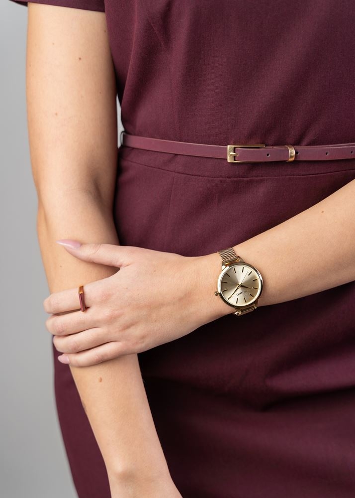 Charakter modelu: złota bransoleta mesh i złota tarcza nadają tej wersji bardziej wyraźny, dopracowany wygląd.