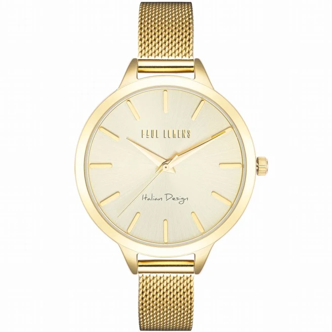 Paul Lorens PL10296B-4D1 to damski model na bransolecie mesh, z kopertą 37 mm i prostą, czytelną tarczą. Ten model łączy lekkość siatkowej bransolety z bardziej uporządkowaną, nowoczesną formą niż w bardzo drobnych zegarkach biżuteryjnych.