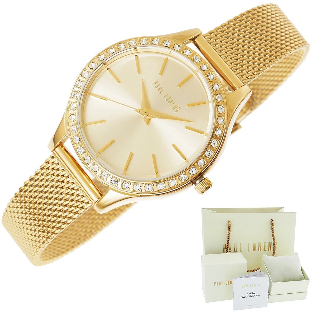 Stylowy zegarek damski Paul Lorens PL10482B2-4D1 to idealne połączenie elegancji i nowoczesności. Złota koperta ozdobiona cyrkoniami oraz złota tarcza i bransoleta typu mesh tworzą wyjątkowy dodatek do codziennych oraz wieczorowych stylizacji.