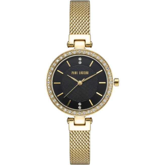 Paul Lorens PL10995B-1D1 to damski model na delikatnej bransolecie mesh z kopertą 32 mm, cyrkoniami wokół koperty oraz czterema drobnymi akcentami jubilerskimi na tarczy. Ten model stawia na lekkość, wygodę dopasowania i bardziej biżuteryjny efekt niż klasyczne zegarki na zwykłej bransolecie.