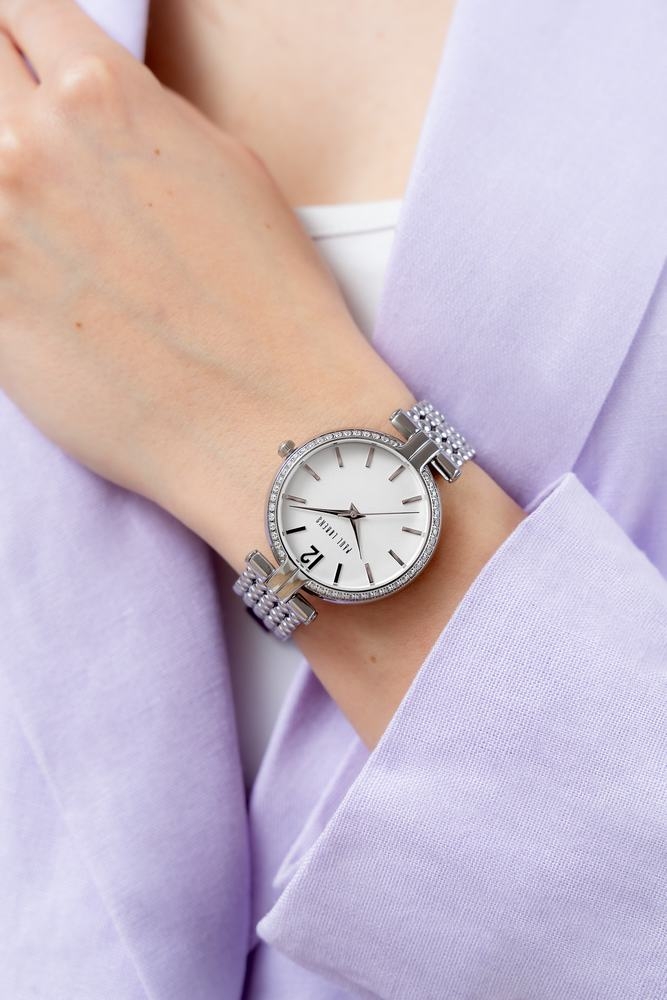 Jej gładka, delikatnie połyskująca powierzchnia harmonijnie oplata nadgarstek, zapewniając komfort noszenia przez cały dzień. Dzięki precyzyjnemu wyprofilowaniu idealnie dopasowuje się do kobiecej dłoni, subtelnie podkreślając smukłość nadgarstka i dodając każdej stylizacji elegancji. Stal nierdzewna łączy w sobie zarówno wytrzymałość, jak i lekkość, co sprawia, że zegarek nosi się z wyjątkową wygodą. Design bransolety idealnie balansuje pomiędzy luksusem a codzienną prostotą, sprawiając, że ten model zegarka jest idealny zarówno na wieczorne wyjścia, jak i na co dzień. Całość dopełnia logo Paul Lorens na zapięciu bransolety.