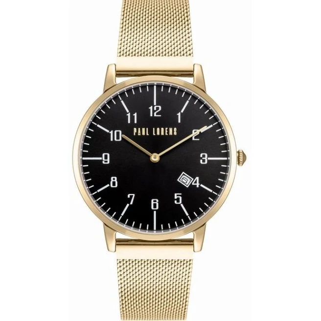 Paul Lorens PL11503B-1D1 to damski model na bransolecie mesh, z większą kopertą 42 mm i prostą tarczą uzupełnioną datownikiem. Ten model łączy biżuteryjny wygląd siatkowej bransolety z bardziej zauważalnym rozmiarem na nadgarstku.