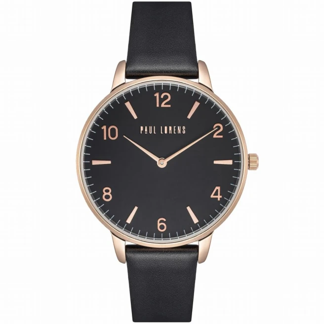 Paul Lorens PL12177A6-1A3 to damski model na skórzanym pasku z kopertą 38 mm i prostą analogową tarczą. Całość jest spokojna wizualnie i bardziej codzienna niż ozdobne zegarki biżuteryjne, ale nadal zachowuje elegancki szlif.