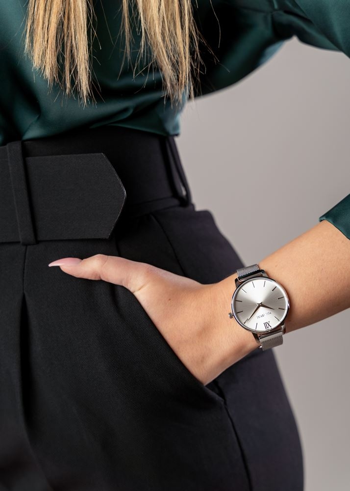 i klasycznej elegancji. Srebrna bransoleta typu Mesh w zestawieniu z srebrną tarczą tworzy wyjątkowo subtelny design który podkreśli każdą stylizację.