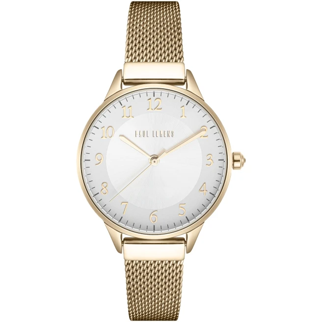 Paul Lorens PL12189B-3D1 to damski model na bransolecie mesh z kopertą 34 mm i prostą analogową tarczą. Całość jest delikatniejsza niż większe zegarki codzienne, ale nadal pozostaje czytelna i dobrze wygląda zarówno solo, jak i obok biżuterii.