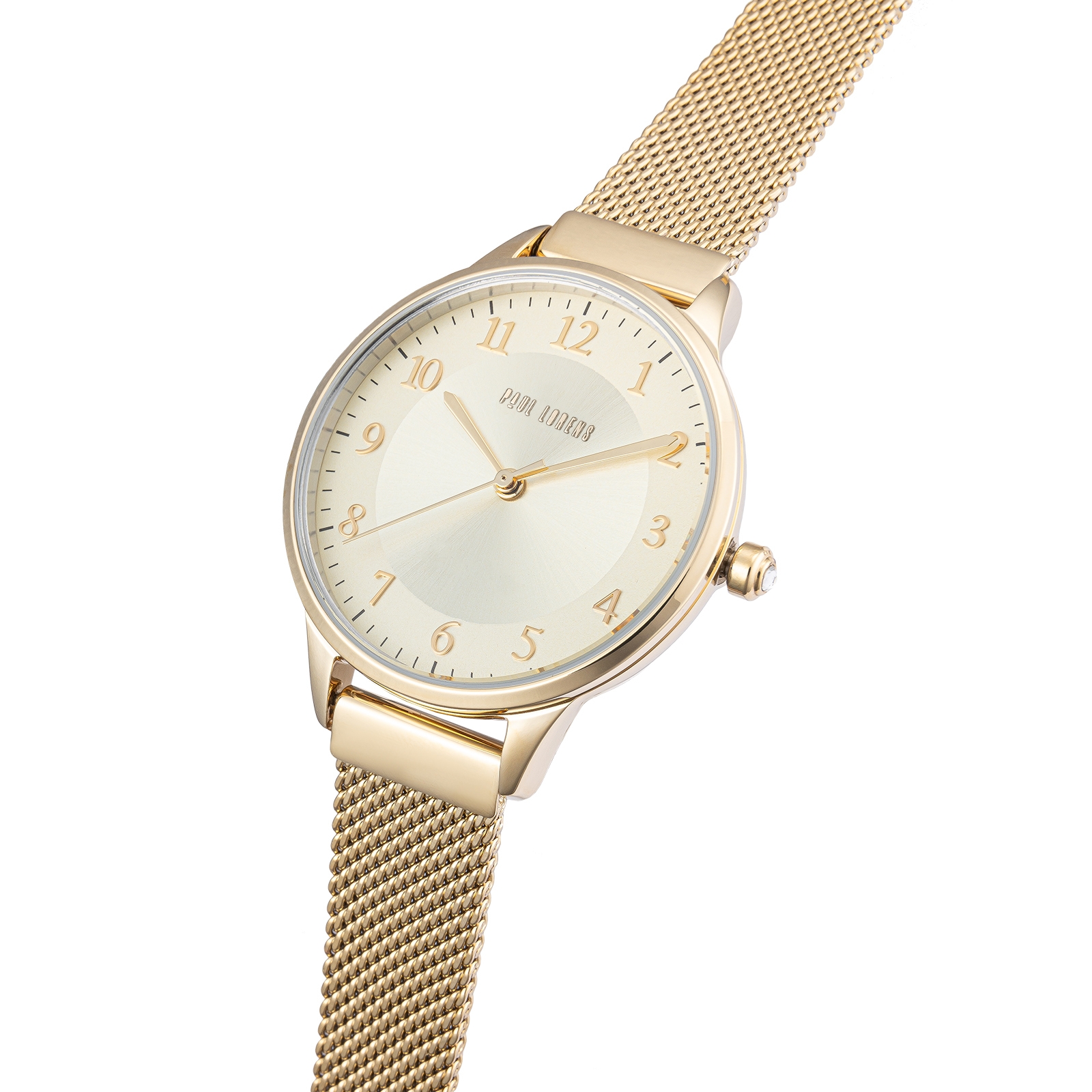 Paul Lorens PL12189B-4D1 to damski model na bransolecie mesh z kopertą 34 mm i prostą analogową tarczą. Całość jest delikatniejsza niż większe zegarki codzienne, ale nadal pozostaje czytelna i dobrze wygląda zarówno solo, jak i obok biżuterii.