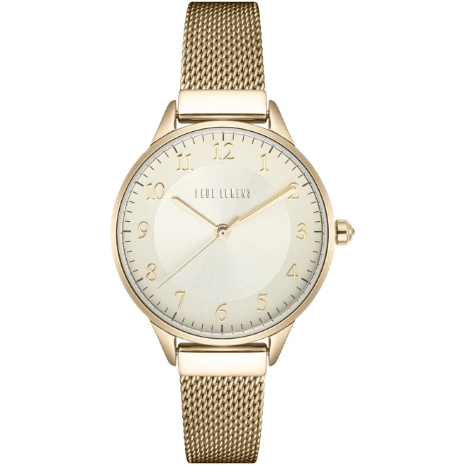 Paul Lorens PL12189B-4D1 to damski model na bransolecie mesh z kopertą 34 mm i prostą analogową tarczą. Całość jest delikatniejsza niż większe zegarki codzienne, ale nadal pozostaje czytelna i dobrze wygląda zarówno solo, jak i obok biżuterii.