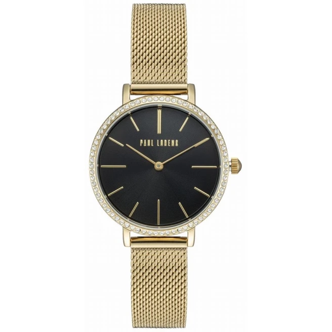Paul Lorens PL12894B-1D1 to damski model na bransolecie mesh z kopertą 34 mm i tarczą ozdobioną cyrkoniami. Ten model łączy delikatną siatkę z biżuteryjnym wykończeniem, ale nadal zostaje czytelna i wygodna na co dzień.