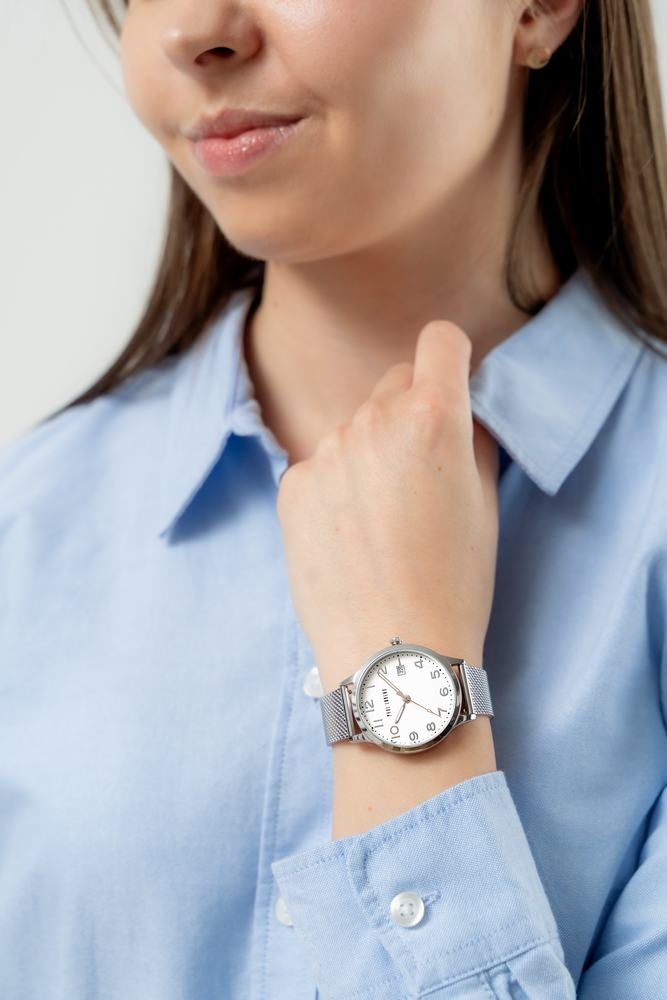 - Mechanizm: Precyzyjny kwarcowy z trzema wskazówkami: godzinową, minutową i sekundową / zasilany baterią