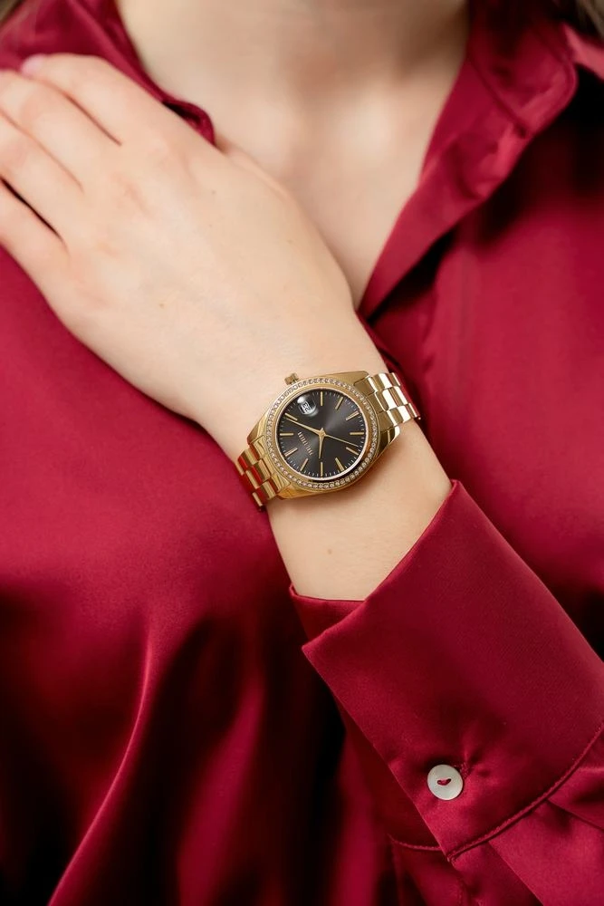 - Indeksy/Wskazówki/Sekundnik: kolor złoty