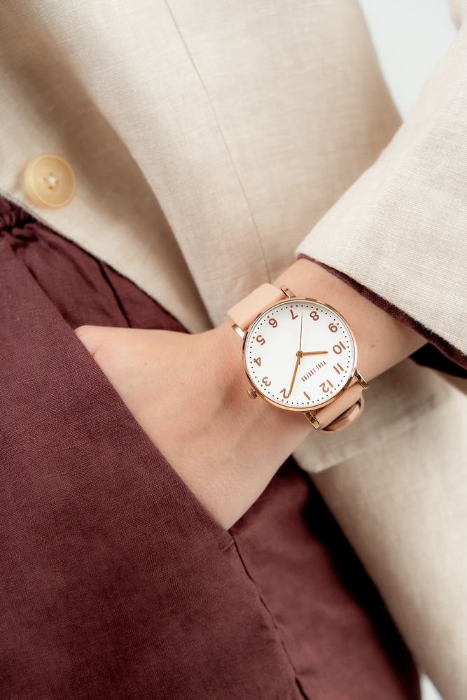 - Pasek: pudrowy róż / Sprzączka: różowe złoto