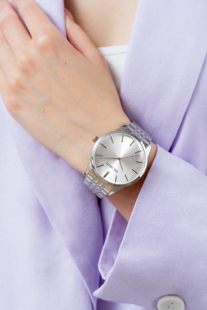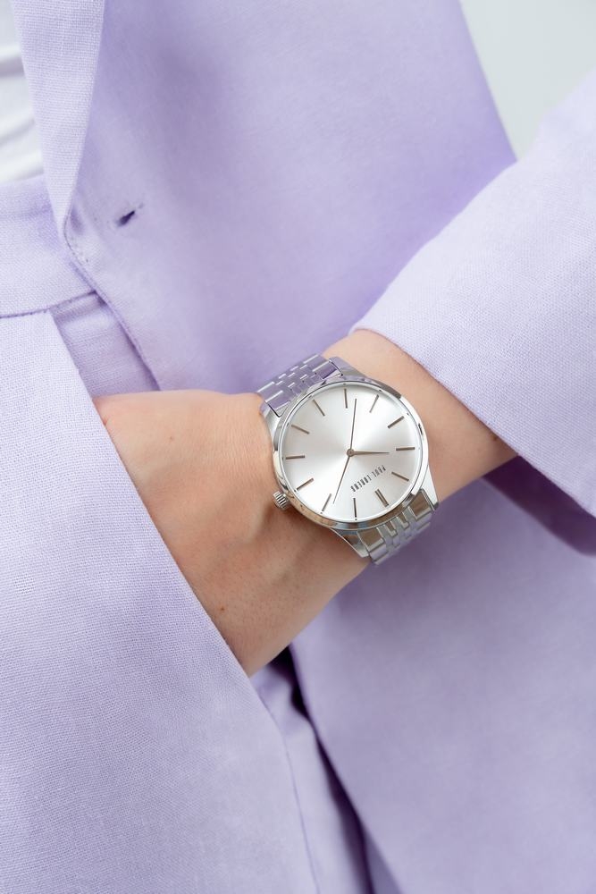 Jej gładka, delikatnie połyskująca powierzchnia harmonijnie oplata nadgarstek, zapewniając komfort noszenia przez cały dzień. Dzięki precyzyjnemu wyprofilowaniu idealnie dopasowuje się do kobiecej dłoni, subtelnie podkreślając smukłość nadgarstka i dodając każdej stylizacji elegancji. Stal nierdzewna łączy w sobie zarówno wytrzymałość, jak i lekkość, co sprawia, że zegarek nosi się z wyjątkową wygodą. Design bransolety idealnie balansuje pomiędzy luksusem a codzienną prostotą, sprawiając, że ten model zegarka jest idealny zarówno na wieczorne wyjścia, jak i na co dzień. Całość dopełnia logo Paul Lorens na zapięciu bransolety.