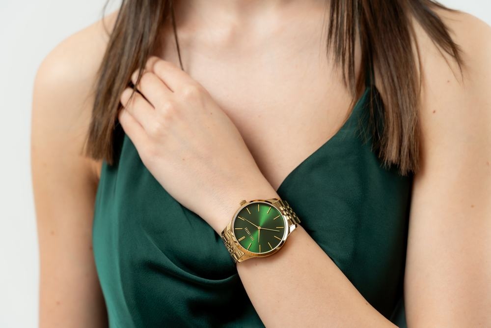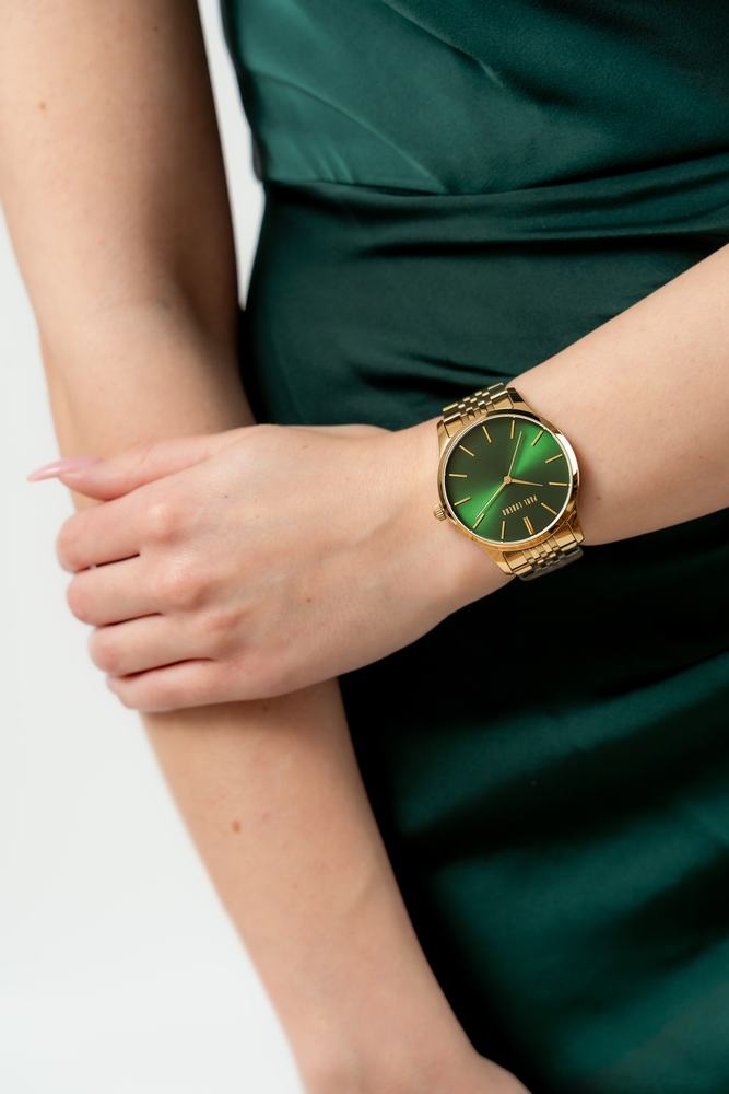 - Tarcza: szmaragdowa zieleń z delikatnym, promienistym efektem satynowego połysku