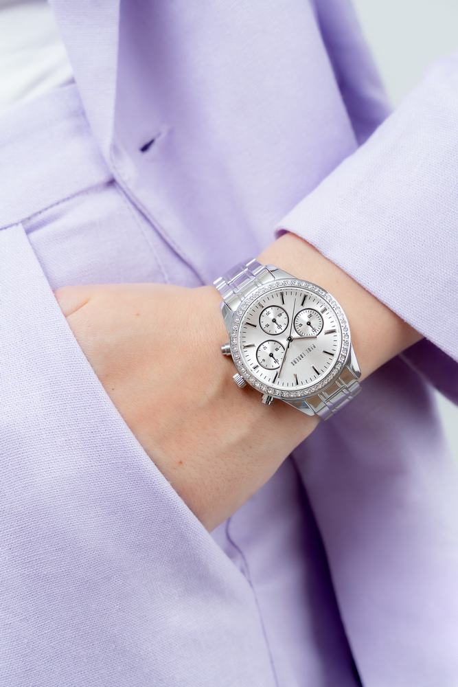 Jej gładka, delikatnie połyskująca powierzchnia harmonijnie oplata nadgarstek, zapewniając komfort noszenia przez cały dzień. Dzięki precyzyjnemu wyprofilowaniu idealnie dopasowuje się do kobiecej dłoni, subtelnie podkreślając smukłość nadgarstka i dodając każdej stylizacji elegancji. Stal nierdzewna łączy w sobie zarówno wytrzymałość, jak i lekkość, co sprawia, że zegarek nosi się z wyjątkową wygodą. Design bransolety idealnie balansuje pomiędzy luksusem a codzienną prostotą, sprawiając, że ten model zegarka jest idealny zarówno na wieczorne wyjścia, jak i na co dzień. Całość dopełnia logo Paul Lorens na zapięciu bransolety.