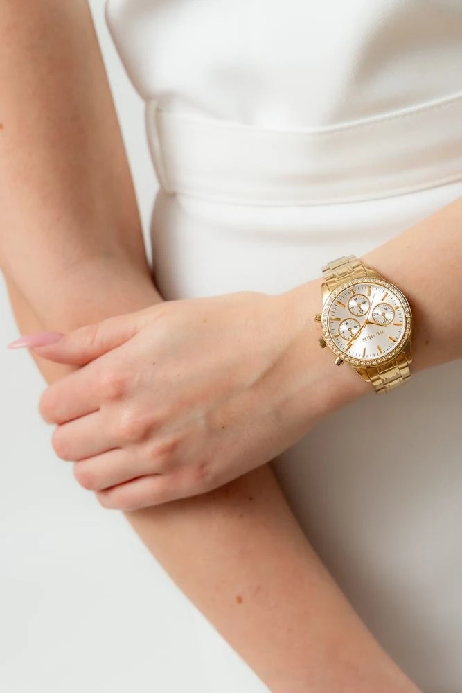 - Indeksy/Wskazówki/Sekundnik: kolor złoty
