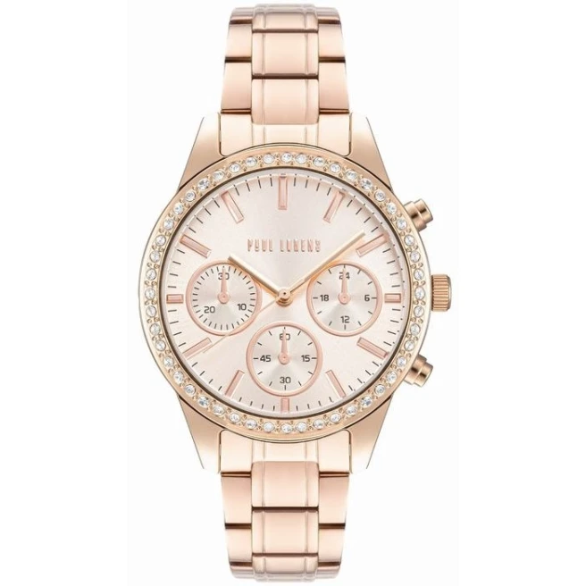 Paul Lorens PL20020B-4D2 to damski model na stalowej bransolecie z kopertą 36 mm i tarczą uzupełnioną cyrkoniami. Ten model ma bardziej ozdobny, biżuteryjny charakter niż proste trzywskazówkowce bez dekoracyjnych detali.