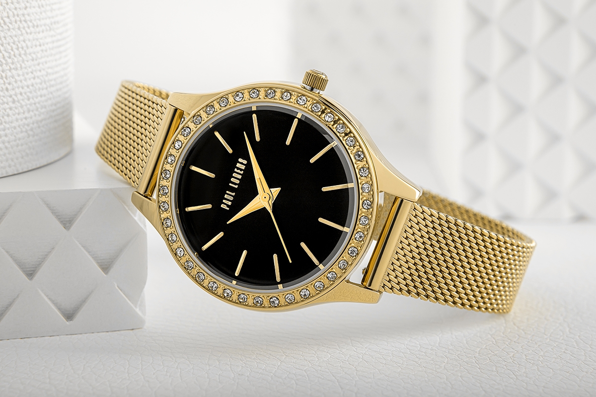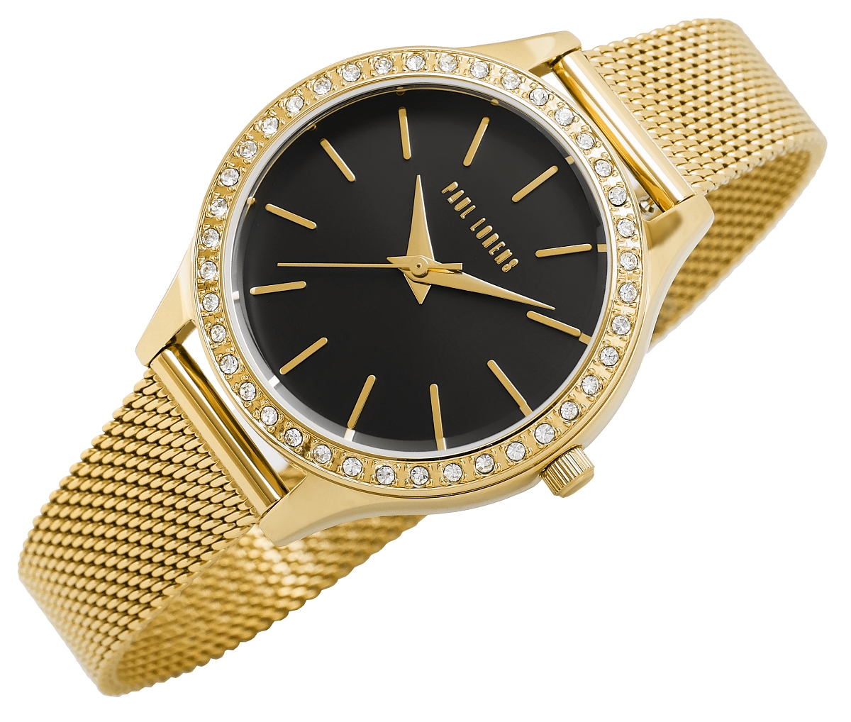 Paul Lorens PL10482B2-1D1 to damski model na bransolecie mesh z kopertą 34 mm i tarczą ozdobioną cyrkoniami. Ten model łączy smukłą, siatkową bransoletę z delikatnie ozdobnym wykończeniem, dzięki czemu wypada lekko i elegancko na nadgarstku.