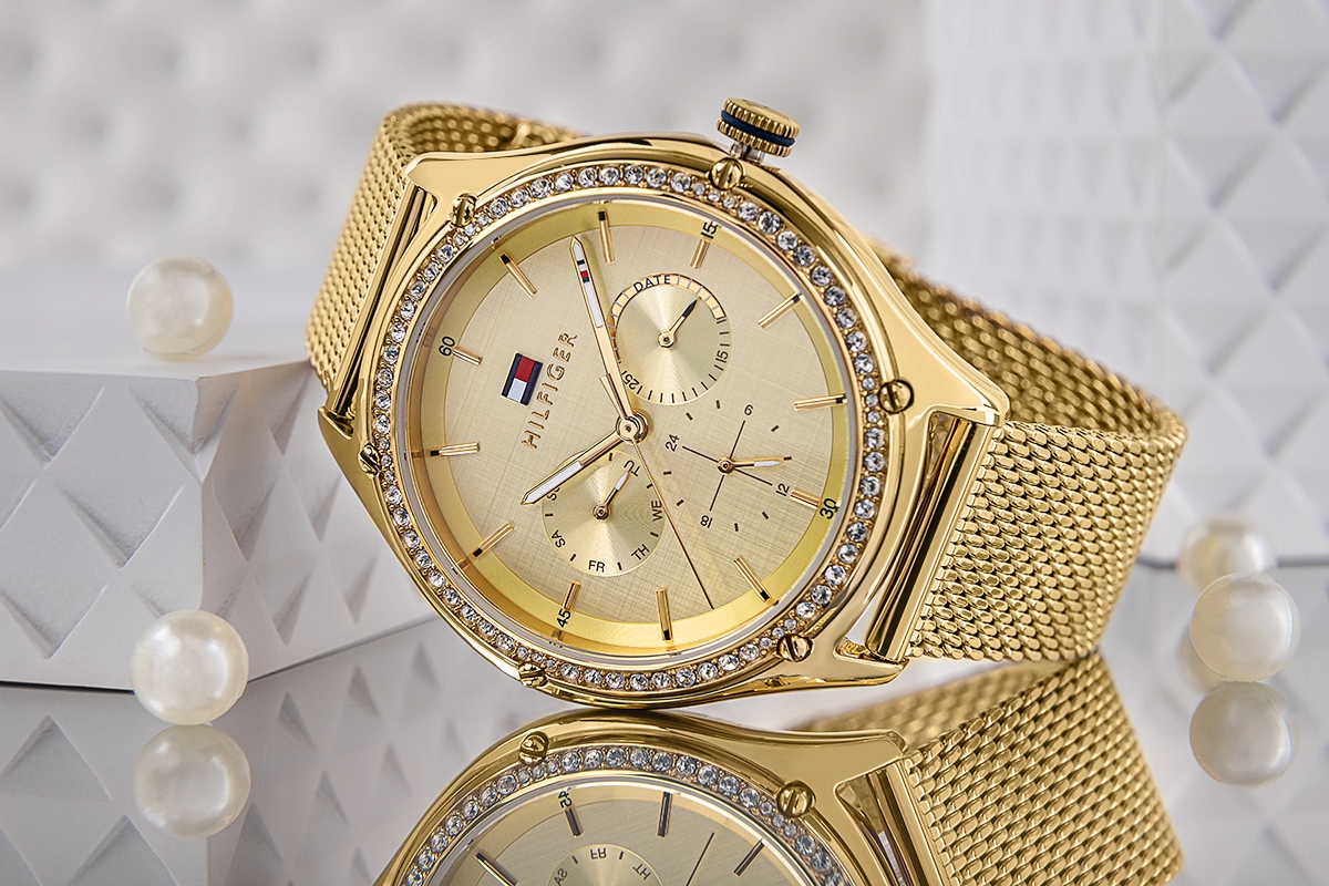 Tommy Hilfiger Lexi to wcielenie luksusu – skąpany w blasku złota zegarek, ozdobiony iskrzącymi cyrkoniami, został stworzony dla kobiet ceniących elegancję i wyrafinowany styl. Jego wyjątkowy design podkreśla prestiż każdej chwili.