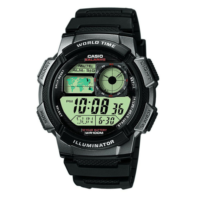 pozwala na korzystanie z zegarka podczas pływania, a liczne funkcje, takie jak podświetlenie LED, automatyczny kalendarz, 5 alarmów dziennych, timer, stoper oraz czas światowy, czynią go idealnym wyborem dla aktywnych osób.