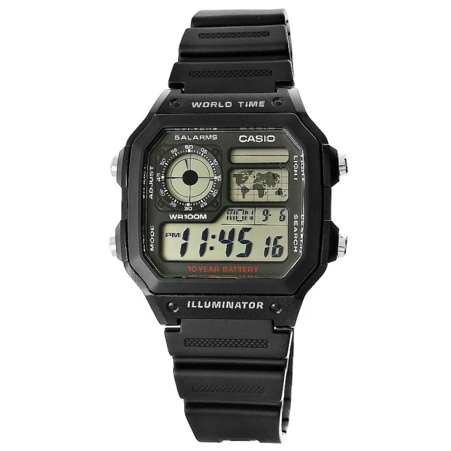 Casio AE-1200WH-1AVEF to jedna z najbardziej rozpoznawalnych nowoczesnych cyfrówek Casio. Światowy czas, układ inspirowany elektroniką użytkową i bardzo mocna bateria sprawiają, że ten model jest chętnie wybierany jako praktyczny zegarek podróżny i codzienny.