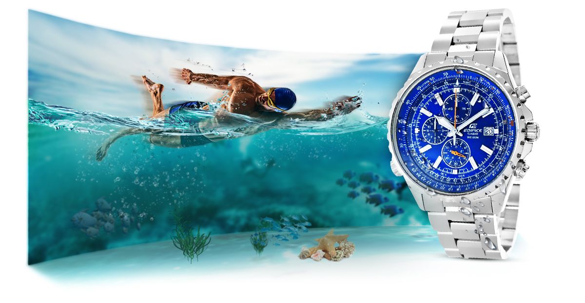 Przy wodoszczelności 100 m możemy bez obaw pływać w zegarku. Jednak musimy pamiętać, żeby nie dotykać przycisków.