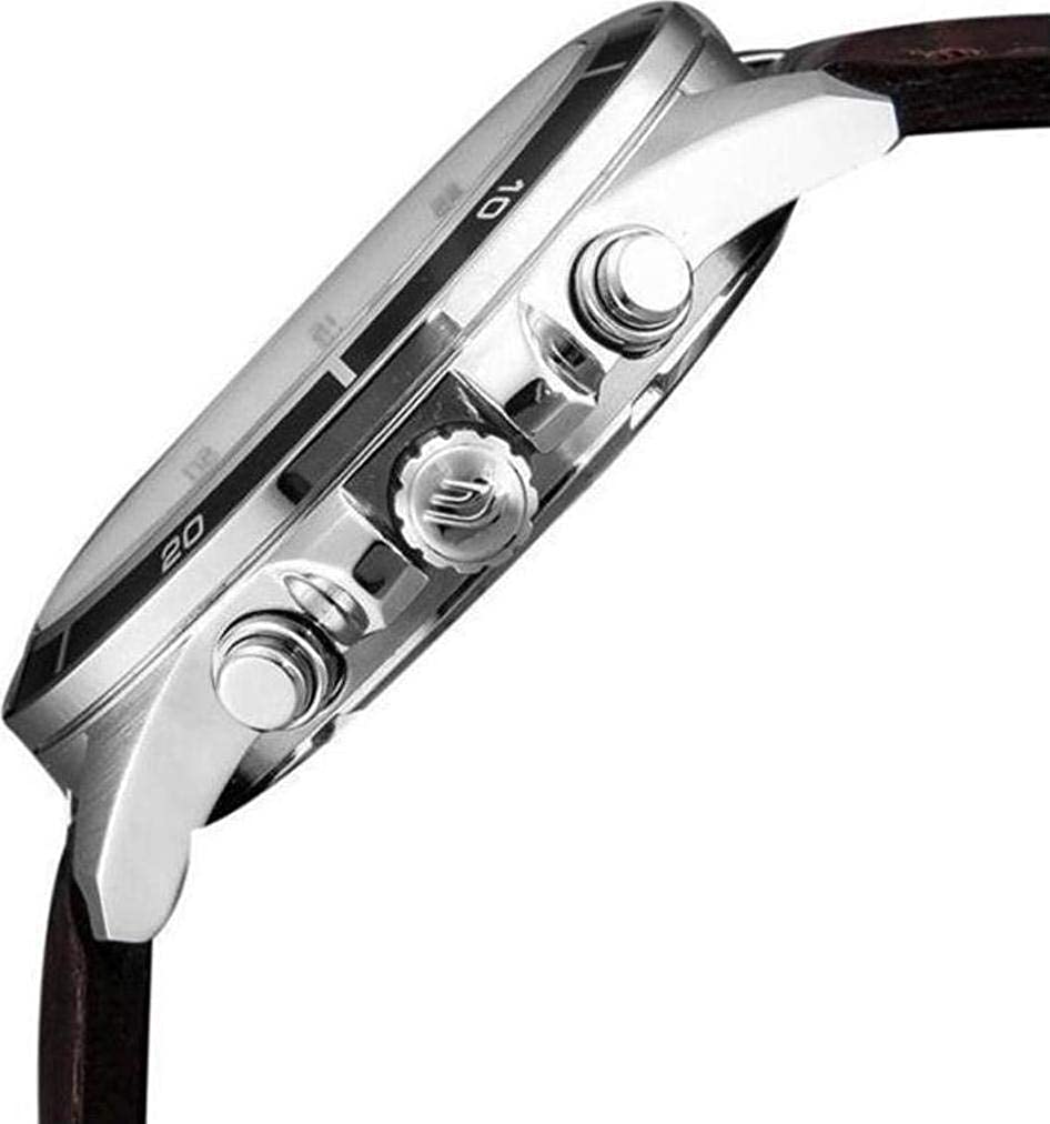 Tarcza: Analogowa Neobrite- pokrycie tarczy podświetlające delikatnie zegarek w ciemnościach. z funkcją daty dni miesiąca, chronografy: stoper 1/10 sekund, sekundnik, stoper minut